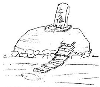 上人塚の本来の場所は定林寺字段691番地に建っていたが、昭和初期に共同墓地に移築されたと云う。元の上人塚は面積凡そ3-4坪でこんもりとした土盛りが、1.5m程の高さがあり、その下面から10段位のなだらかな石段が有った。その頂上に上人塚が祀られていた。