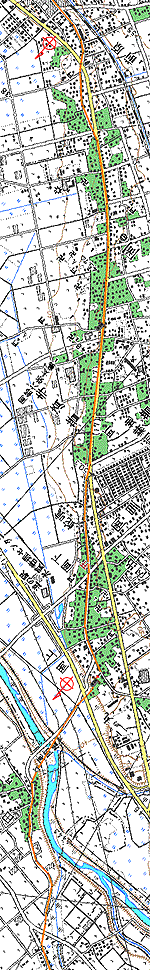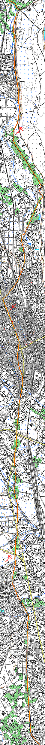 | ![]() R17バイパス | ↓ 右上の道に上がりR17を横断 ↑ R17横断後右下の道に降りる 小山川 | ![]() ![]() 滝岡の渡し |